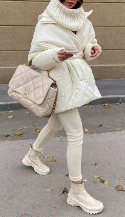 Верхній одяг нюдового кольору – маст-хев для морозної погоди. Світлого кольору куртки, пальто, шуби та дублянки найкраще будуть поєднуватись, як з однотонними, так і принтованими повсякденними вбраннями.