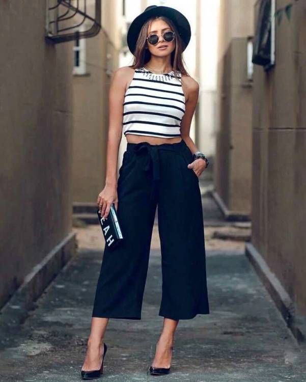 Не обійдеться модна лінійка штанів на це літо без кюлотів. Правда рекомендуємо віддавати перевагу моделям із завищеною посадкою, широкими штанинами.