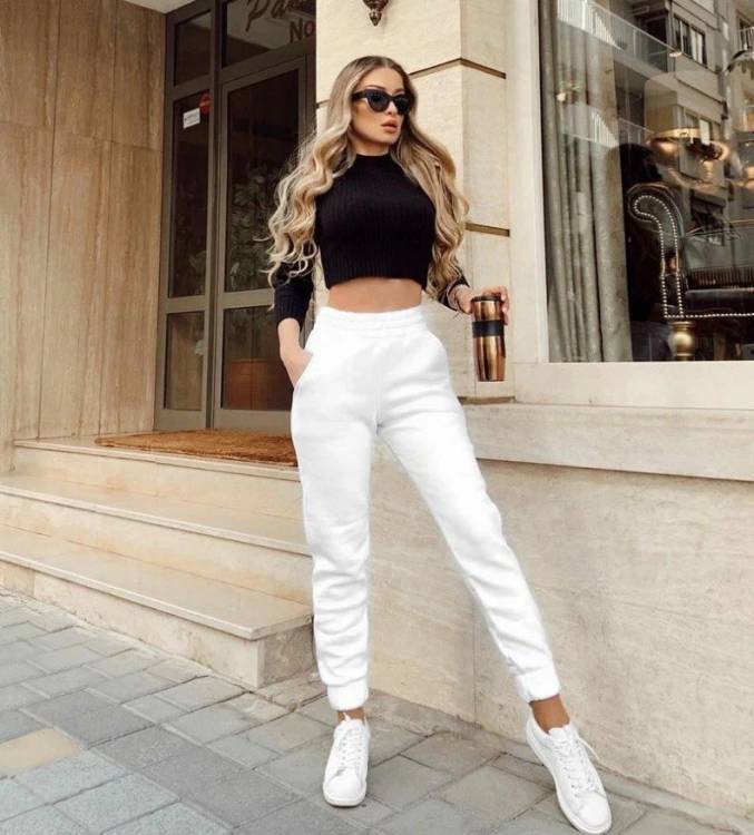 Що стосується вигідної партії до цих штанів, то до них чудово підійдуть повітряні блузи, корсети, легкий світшот і жакети. Ну і звичайно варто звернути увагу на колірну палітру. Щоб не помилитися, рекомендуємо зробити ставку на чорний, білий, смарагдовий, бежевий або винний.