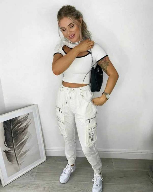 І знаєте, що вражає? Незважаючи на те, що карго настільки брутальні, вони чудово поєднуються з жіночними речами. Ті ж босоніжки на підборах.
