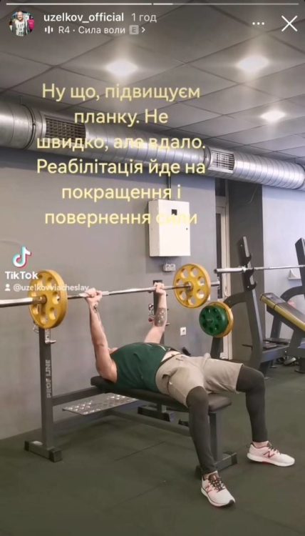 “Ну що, підвищуємо планку. Не швидко, але впевнено. Реабілітація йде на краще і повертає сили”, – зазначив В’ячеслав Узелков.