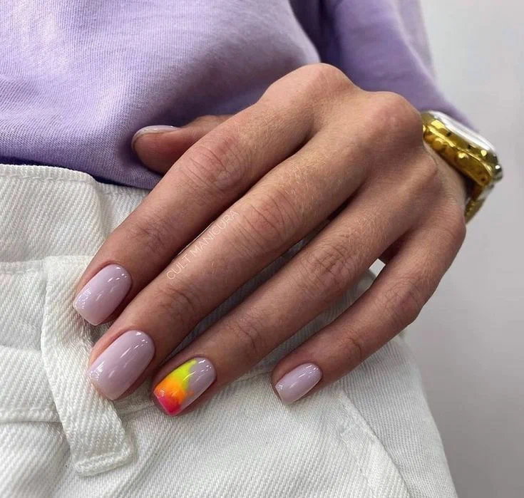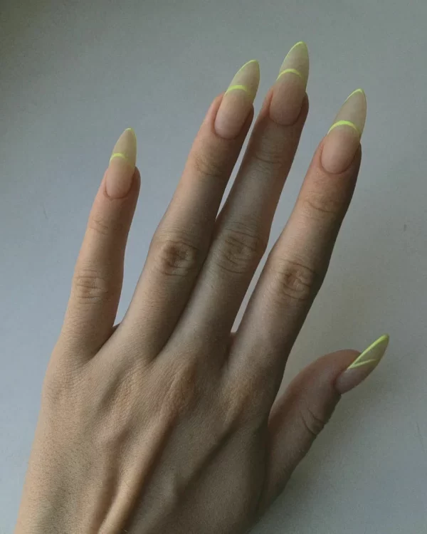Чудовим способом освіжити максимально природний манікюр будуть прямі або криві лінії яскравих, весняних відтінків, за допомогою яких заграє манікюр іншими фарбами.