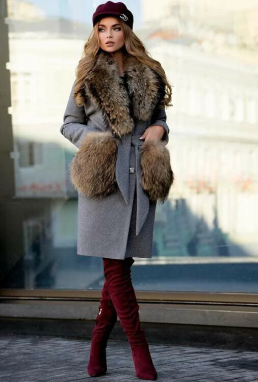 В якості альтернативи можете розглянути варіанти пальто також з хутром, але він повинен бути присутнім тільки в області коміра. Також уваги заслуговує пальто-кокон, з запахом або прямого крою, переважно з драпу або вовни.