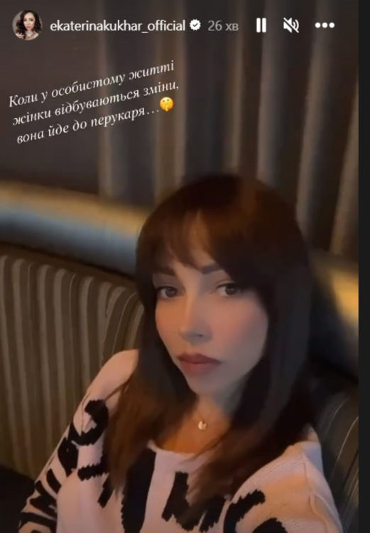 Знаменита українська прима-балерина Катерина Кухар розмістила новий знімок у своїх інстаграм-сторіс. На світлині знаменитість показала себе й натякнула на зміни в особистому житті. Схоже, знаменитість побувала у перукарні й навела красу.
