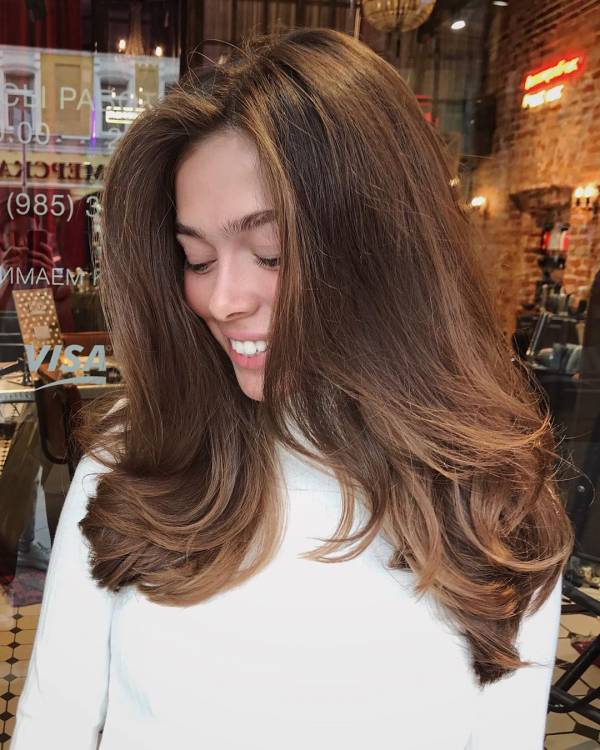 Шляхетні шоколадні відтінки також у пріоритеті у сучасних дам із відмінним почуттям стилю. Однотонне фарбування насичено-шоколадного кольору виглядає дорого. Шевелюра такого кольору точно не залишиться поза увагою. Темні відтінки допоможуть зробити зовнішність максимально виразною та яскравою. Спробувавши якось перефарбувати волосся в дорогий шоколадний колір, ви залишитеся йому вірним назавжди. На шоколадному фоні гармонійно виглядають медові, карамельні, пшеничні та коньячні відблиски.