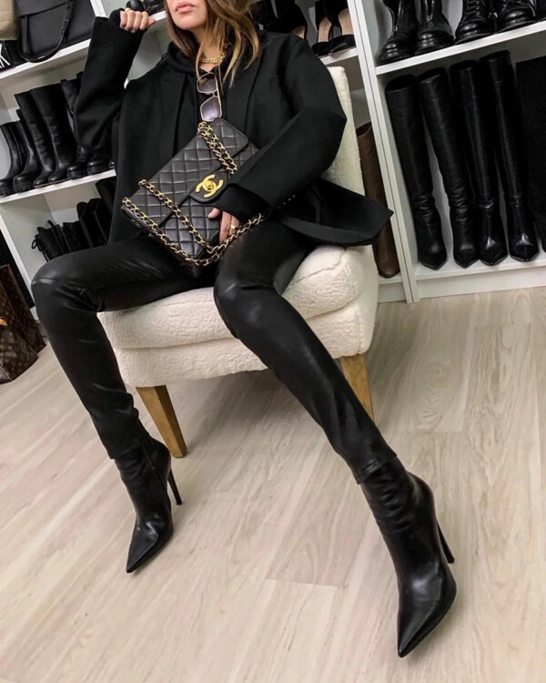 Ефектні вузькі шкіряні штани виглядають приголомшливо на струнких високих дівчатах. Власницям пишних форм радять утриматися від придбання таких моделей. Обтягуючи жіночий силует, шкіра може продемонструвати всі недоліки фігури у вигляді непотрібних складок на стегнах.