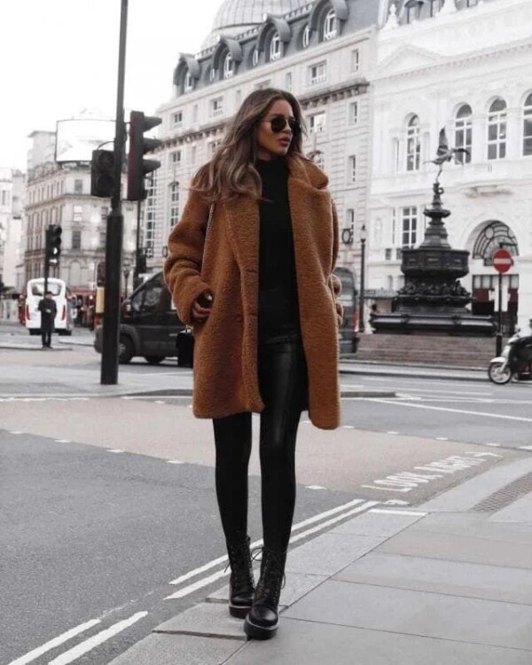 Шкіра – це один з головних трендів 2020 році. Стосується це як одягу, так і аксесуарів. Шкіряне пальто вільного крою – один з кращих виробів. Коричневі відтінки додадуть «розкоші» зовнішньому вигляду.