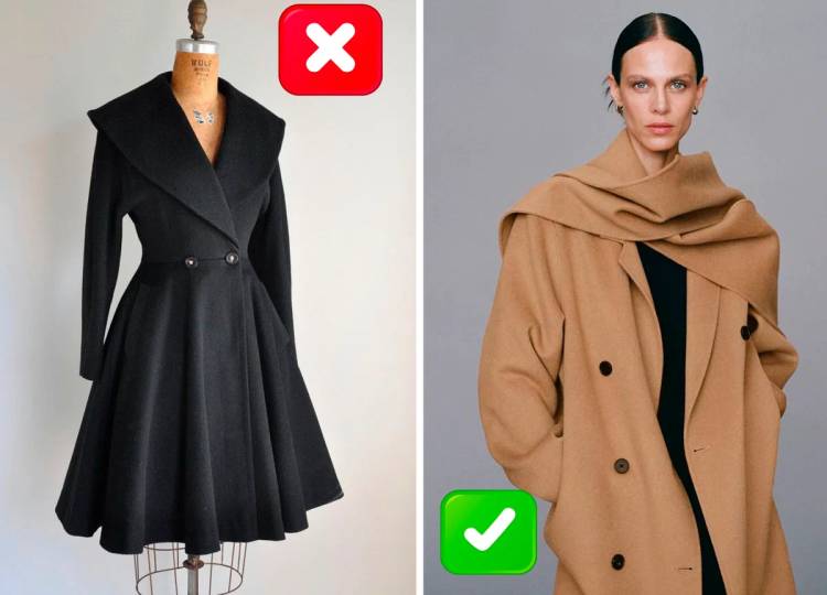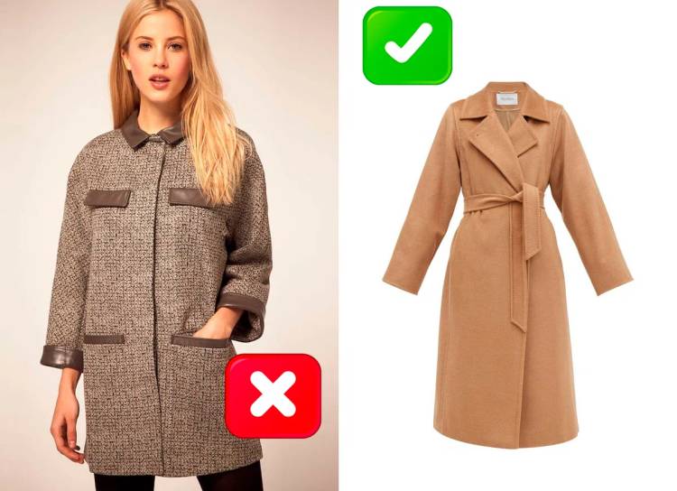 А для любителів класики підійде класичне пальто у стилі Max Mara. Це безпрограшний варіант на всі часи. Варіант ліворуч класикою не є, місця у вашому гардеробі йому немає.
