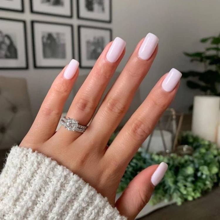 У салонах краси лак молочного відтінку невипадково знаходиться на особливому місці. Він виглядає ніжніше, ніж білий, і чудово гармонує з прикрасами із білого золота з діамантами.