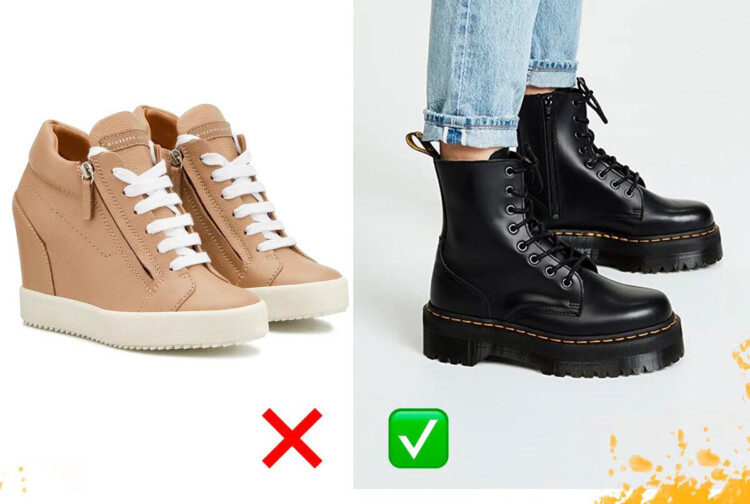 Таке взуття було дуже модне років так 5 назад. Зараз кросівки на платформі є антитрендом, який вже давно вийшов з моди. Але величезна кількість жінок все ще продовжує їх купувати.
