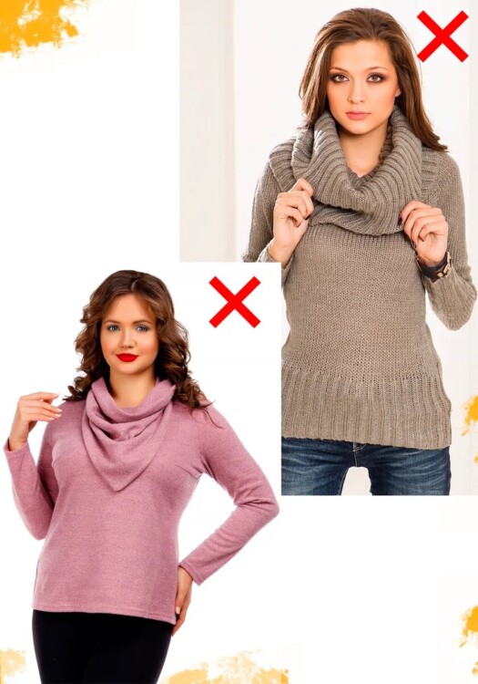 Комір у светра не повинен виглядати як безформний хомут. Зараз такі моделі не актуальні, вони ускладнюють образ і не завжди в кращу сторону.