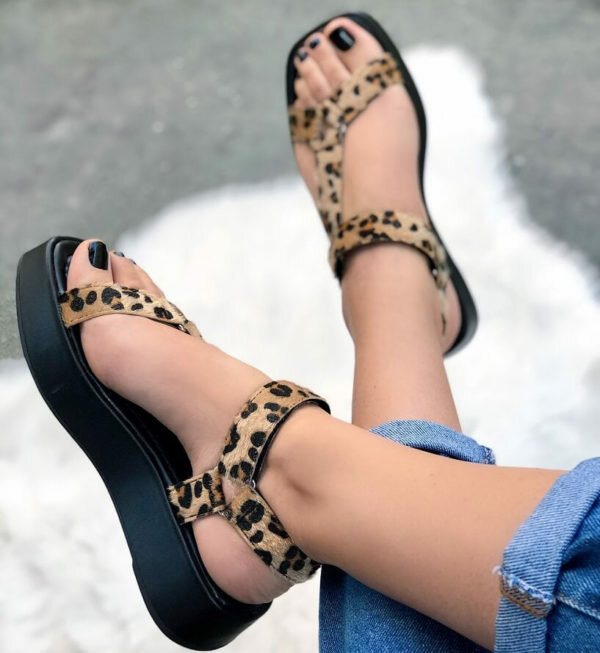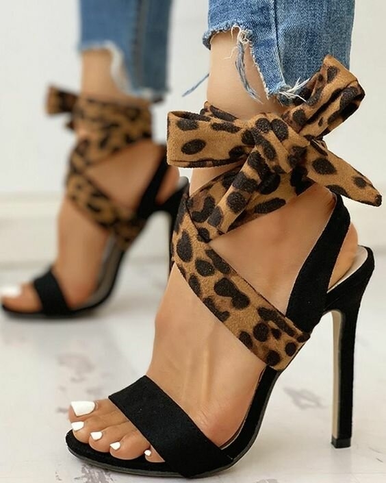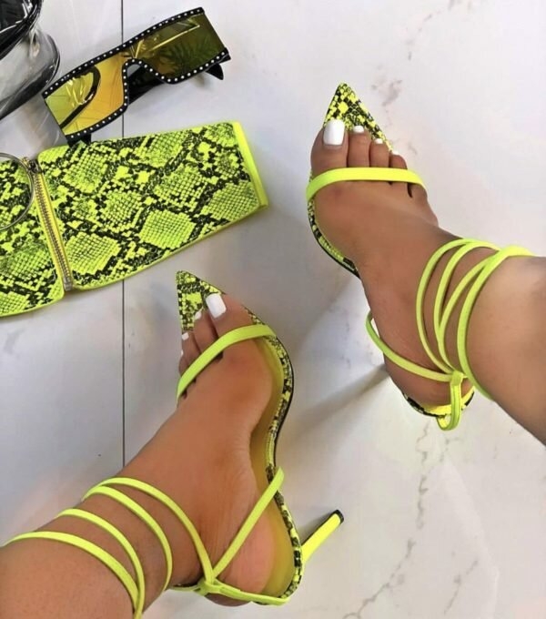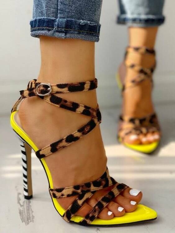 Лаконічні босоніжки з тонкими ремінцями в звіриний принт – взуття, якому під силу перетворити будь-який стилістичний образ. Комбінація: неон + звіриний принт – яскравий тренд 2021 року.