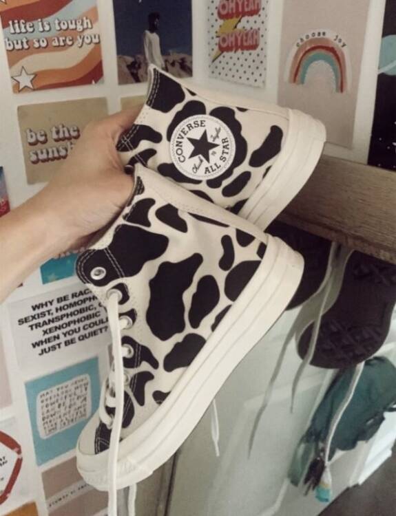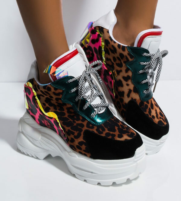 Аутфіти в стилі спорт-шик також не обійдуться без колоритного і стильного взуття. Кросівки, а також кеди в зухвалий звіриний принт будуть пістрявити на прилавках магазинів в цьому сезоні.