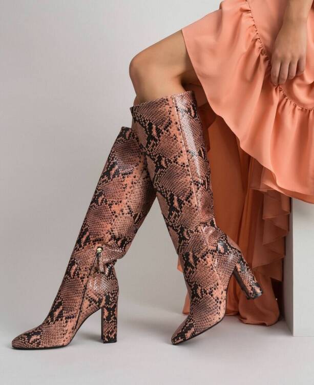 Весняні гостроносі чоботи на високих підборах також будуть залучати нашу увагу своїм колоритним анімалістичним принтом. Стилісти пропонують нам комбінувати чоботи зі звіриним принтом з жіночними шовковими або в’язаними нарядами, створюючи при цьому стильну і святкову картинку.