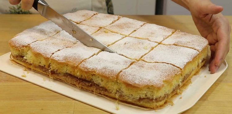 Готовий періг присипаємо цукровою пудрою і нарізаємо на шматочки!