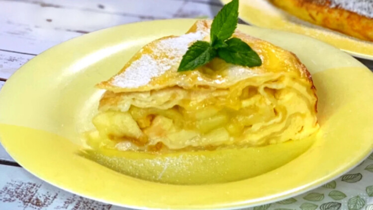 Дуже смачний і соковитий яблучний пиріг, в якому багато начинки. Яблучний пиріг має тонкий аромат ванілі і виражені вершкові нотки. Якщо до яблучної начинки додати корицю і горіхи, смак від цього тільки виграє. Цей пиріг швидко готується і прекрасно підійде для сімейного чаювання. А найприємніше, що калорійність для такого десерту зовсім невелика. Спробуйте приготувати, нічого складного.
