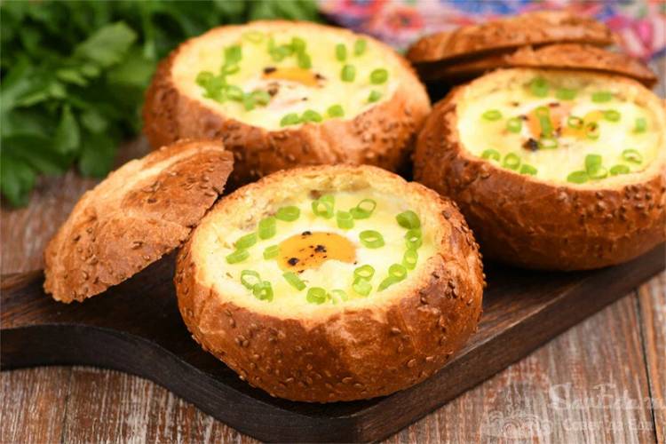 Навіть звичайні страви із простих продуктів можна приготувати та подати оригінально. Для салатів використовую тарталетки з тостового хліба та лаваша, листя хрусткого салату. Для подачі гарячих страв чудово підходять чаші з листкового тіста, булочки, гарні глиняні горщики або форми. Сьогодні будуть яйця у булочках у духовці. Такий сніданок виходить не лише смачним, а й дуже гарним. Готується він легко, з простих продуктів та варіантів можна вигадати безліч. Головна особливість страви – невеликі булочки, які після запікання надають прекрасного хрускоту, чудового аромату та смаку.