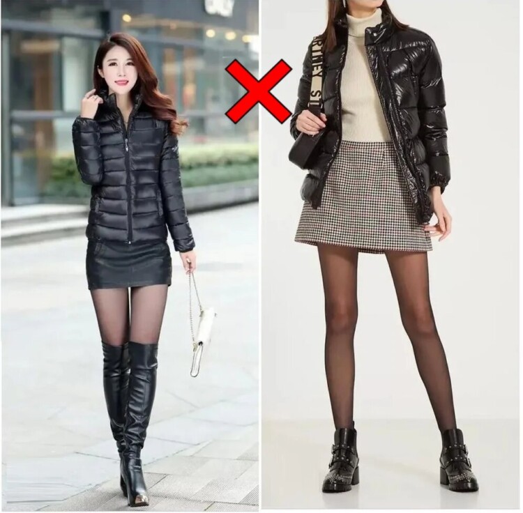 Прозорі тілесні капронові колготки створюють ефект голої ноги, який в умовах холодної зими виглядає абсолютно недоречно, особливо на контрасті з масивним і теплим верхнім одягом – пуховиками, шубами, дублянками. Таке поєднання і виглядає абсолютно не стильно, і знову-таки шкідливо для здоров’я. Взимку носимо тільки теплі щільні колготки, в приміщенні при необхідності міняємо на капрон.