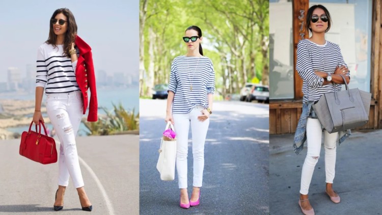 А для прогулянки на морському курорті відмінним вибором буде смугаста футболка. Морський стиль вже давно став класикою в сучасній моді. Це особливо помітно навесні і влітку. Поєднання кольорів: білого з темно-синім підходить кожній жінці – незалежно від віку!