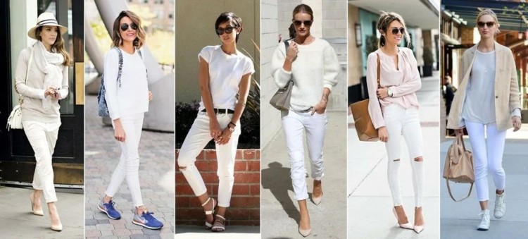 Найбільш елегантний і стильний образ можна отримати, якщо скомбінувати білий верх з білими брюками. Одноколірні комбінації омолоджують, надають фігурі легкість і підкреслюють загар. Якщо вибираєте білий з голови до п’ят, пограйте з вирізом і текстурою!