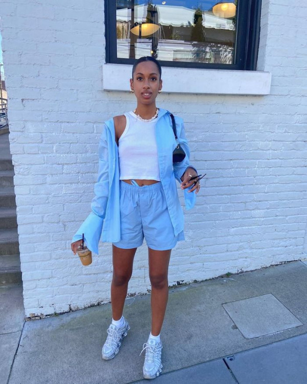 Цього літа дуже популярні невимушені і легкі комплекти з сорочки і шорт в тон. Створіть ідеальний літній образ разом, додавши білу вкорочену майку.