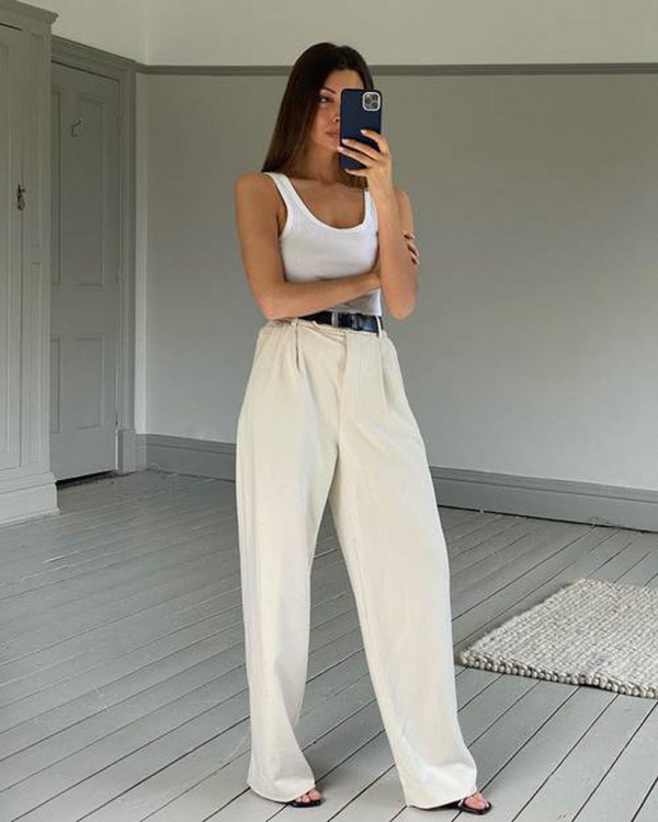 Ніщо так не доповнює просту білу майку краще, ніж прості, але водночас стильні лляні брюки з високою талією.