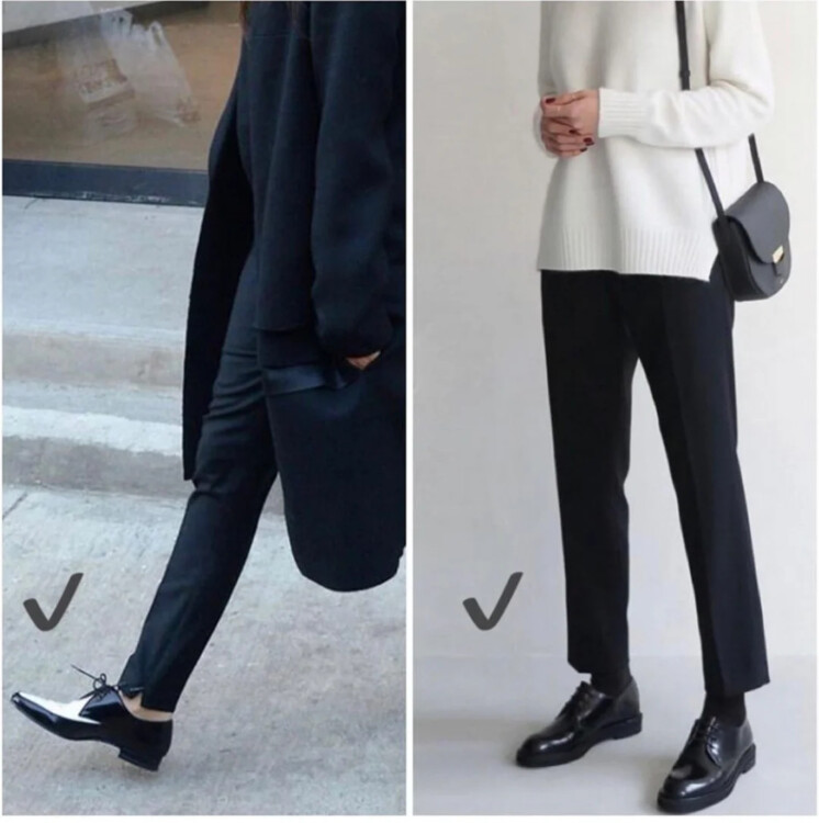 Штанини брюк повинні злегка перекривати халяву ботильонів. Особливо це стосується тих випадків, коли штани на вас вузькі або завужені.