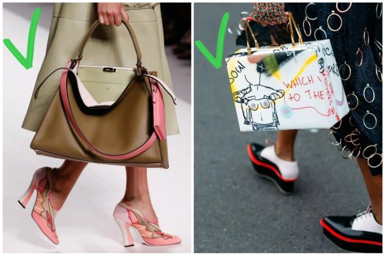 Досить популярне питання до стиліста або людини, яка захоплюється модою – як поєднувати сумку і взуття. Чи повинна сумка обов’язково повторювати колір взуття? Чи правда, що носити сумку і взуття одного кольору в останні роки вважається таким несмаком? Як підібрати взуття під сумку з принтом або сумку під взуття з принтом? Невже у нас повинно бути кілька сумок для того, щоб можна було вважати себе стильною, однієї вже мало?