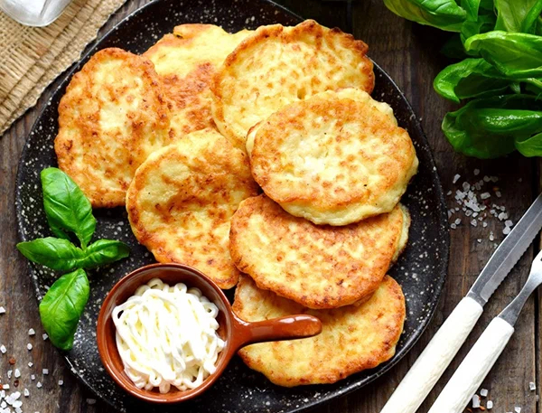 Коли оладки будуть готові, викладіть їх на паперовий рушник, щоб увібрався зайвий жир. Подавайте курячі оладки гарячими та зі сметаною.