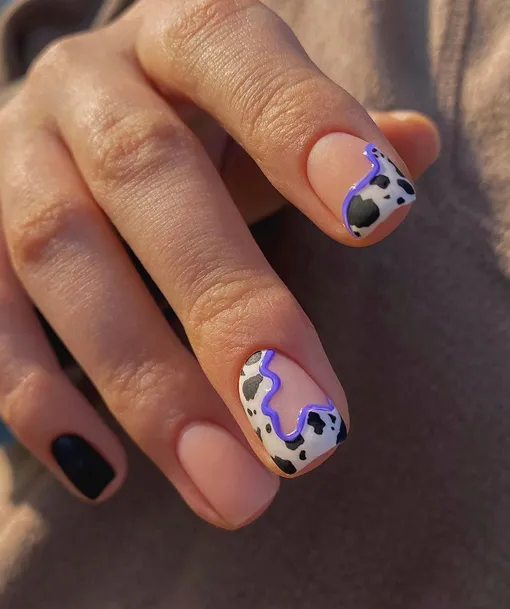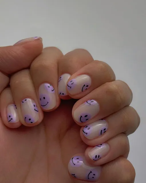Щоб залишатися в тренді, зовсім не обов’язково покривати нігті фіолетовим кольором повністю – використовуйте його як один із елементів нейл-арту. Спробуйте абстракцію або геометрію з використанням бузкового відтінку. Тренд на інфантильність все ще нас не залишає, так що різноманітні, наче дитячі малюнки залишаються на піку популярності.