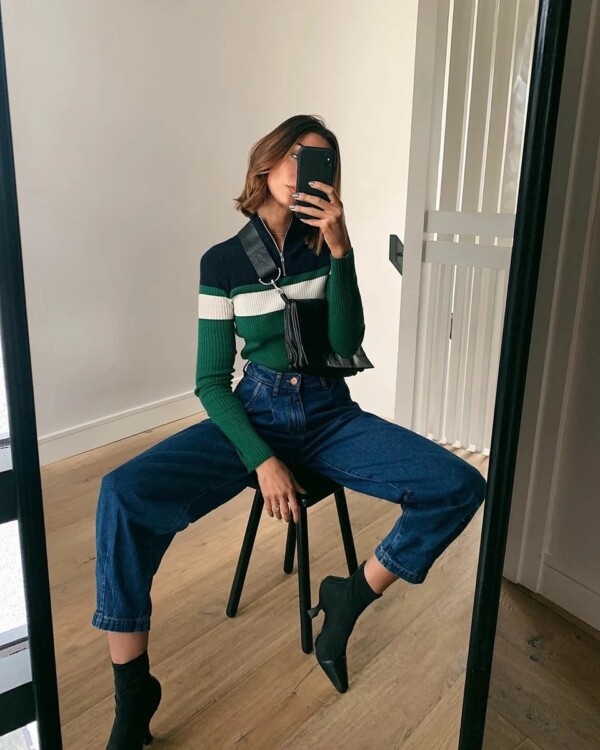 Модель мом джинсів найпопулярніша, як серед молодих, так і серед зрілих сучасних модниць. Восени 2020 року стилісти рекомендують поповнити свій базовий гардероб актуальною моделлю джинсів, за допомогою якої можна скласти гармонійні стріт або кежуал образи. Підсукані джинси мом будуть також мати гарний вигляд у поєднанні з чорними відкритими босоніжками з тонкими деталями, поверх чорної водолазки восени 2020 року можна буде накинути оверсайз тренч базового кольору.
