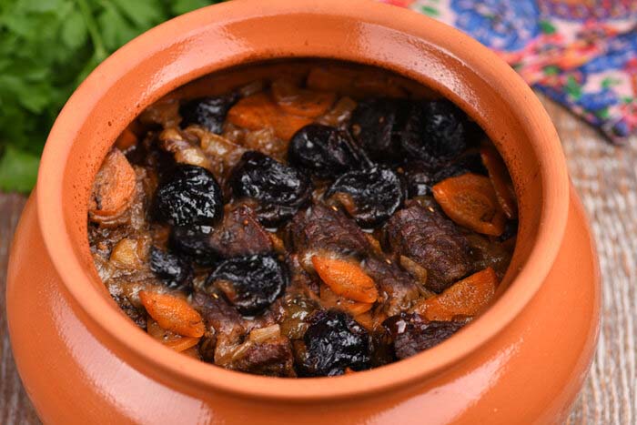 Чорнослив дає прекрасний аромат і чудовий солодкувато-кислуватий смак. Яловичина виходить дуже ніжною і просто тане у роті. Ще утворюється найсмачніший соус. Це дуже ароматна та смачна страва.