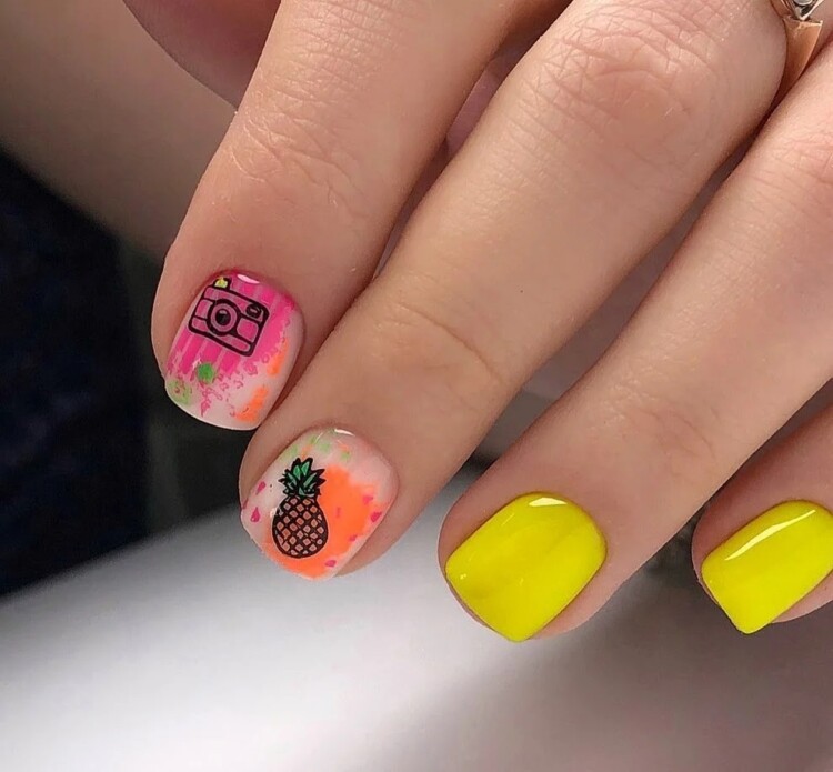 Яскравий комбінований манікюр в неонових тонах стане відмінним варіантом для денного образу. Креативний нейл-арт знайде гідне місце в ньому.