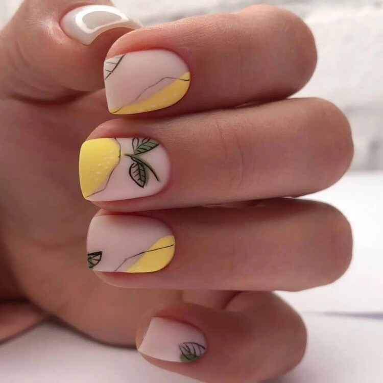 Сліпучий лимонний і соковитий зелений колір гель-лаку розбурхають вашу свідомість. Повторюйте запропоновану ідею з фото.