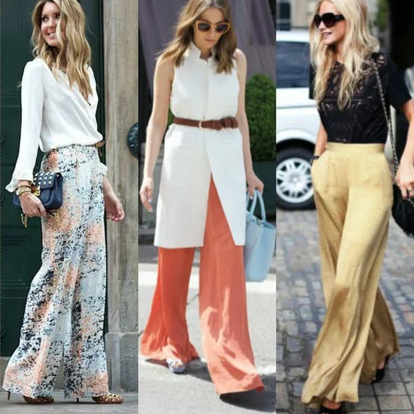 Закривають список теплі палаццо, що дозволяють виглядати ефектно навіть в прохолодну погоду. Якщо говорити про кольорову гаму, то в пріоритеті залишаються однотонні спокійні тони. Однак сміливі модниці цілком можуть підібрати більш яскраві варіанти.