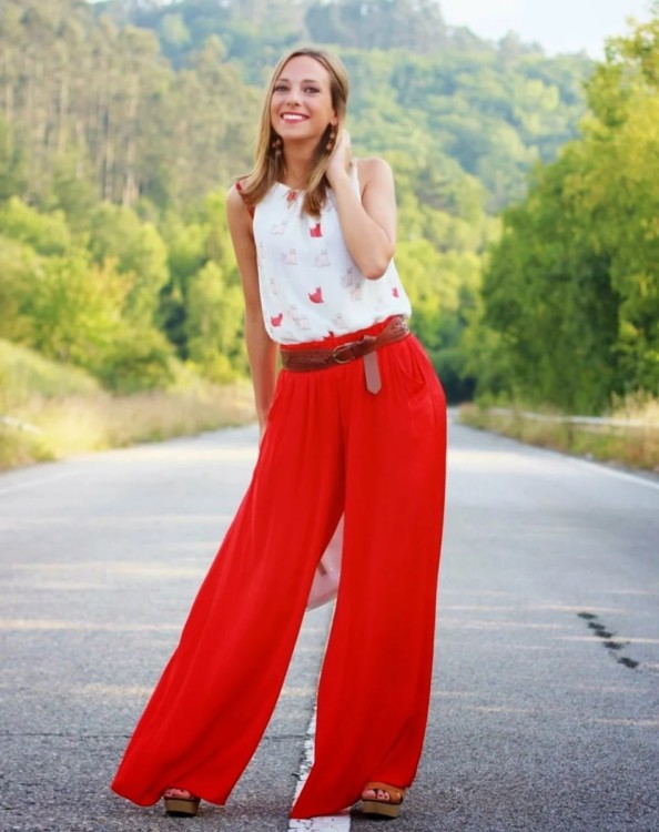 З урахуванням того, що палаццо і без того є яскравою деталлю, саме вони повинні залишатися головною “родзинкою” наряду. Тому якщо штани пошиті з принтованого матеріалу, верх підбирайте виключно однотонний. В іншому випадку ви ризикуєте погіршити образ.