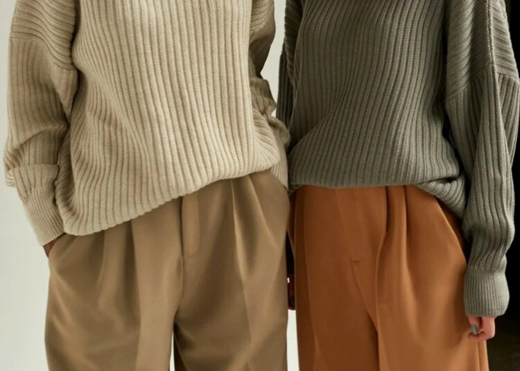 Широкі штани прекрасно поєднуються з тонкими светрами. Відбувається гра контрастів. Але також широкі штани будуть поєднуватися з об’ємним светром. В такому випадку треба буде підвернути брюки або закотити рукава, щоб показати тонкі частини тіла.