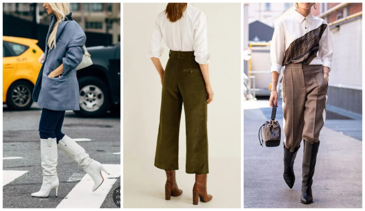 Якщо вибираєте чоботи на осінь, то тільки труби – неймовірно стильні і універсальні. Чи можна носити штани, заправлені в чоботи? Так, але з деяким застереженням: по-перше, це повинні бути чоботи з широкою халявою, не в обліпку. По-друге, штани теж повинні бути вільними. Чим ширше, тим краще! Ну а якщо любите кюлоти, то нехай халява чобіт заходить під штанини.