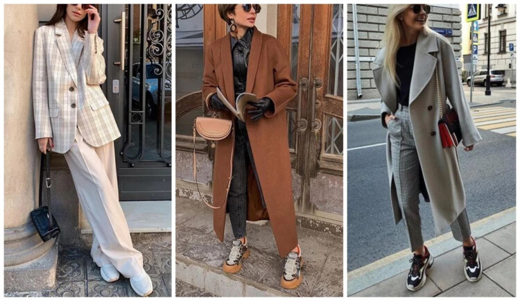 Кросівки ми продовжуємо носити і восени. Причому не тільки з джинсами, але і з будь-якими іншими брюками: це можуть бути і укорочені офісні брюки зі стрілками, і навіть широкі моделі а-ля палаццо в підлогу. Але такий варіант, звичайно, тільки на суху погоду.
