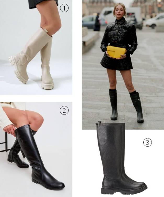 Чоботи з широкою халявою актуальні завжди! Цієї осені придивіться до класичних моделей на масивній підошві і байкерських варіантів – вони універсальні, а значить, підійдуть на кожен день: до сукні, штани, заправлені всередину, або міні-спідниці.