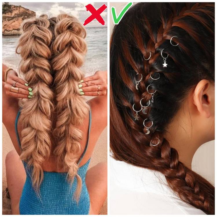 Тому якщо вам подобається коса, то зробіть її або дуже щільною, вплітаючи канекалон або звичайні, і повісьте прикраси, наприклад, кільця.