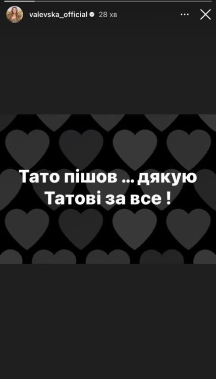 “Тато пішов… Дякую татові за все”, — коротко й зворушливо повідомила Валевська своїм підписникам.