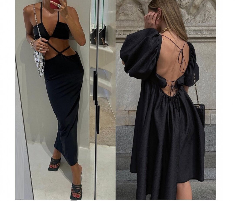 Ще один стильний прийом, який візуально ускладнить аутфіти в чорному кольорі – це використання тренда на всілякі розрізи, вирізи, зав’язки. Такий образ вже точно не назвеш нудним. Як і повсякденним – швидше за все, це буде варіант “на вихід”. Сміливо вибираємо подібні сукні, топи, спідниці та брюки, поки така естетика на піку популярності.