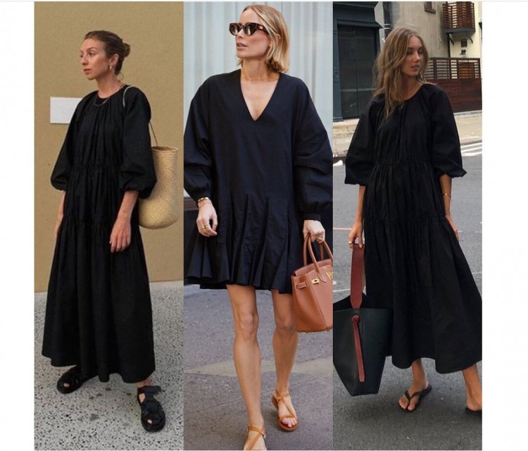 Продовжуючи тему вільного крою. Об’ємні сукні-парашути прийшли до нас ще минулого літа і досі є одними з найбільш гарячих трендів. І поки всі інстаграм-модниці одягаються в рожеве і зелене, ви можете піти своїм шляхом і скласти неймовірно стильний лук з чорною сукнею, це буде виглядати шалено ефектно.