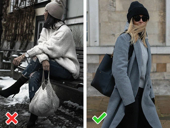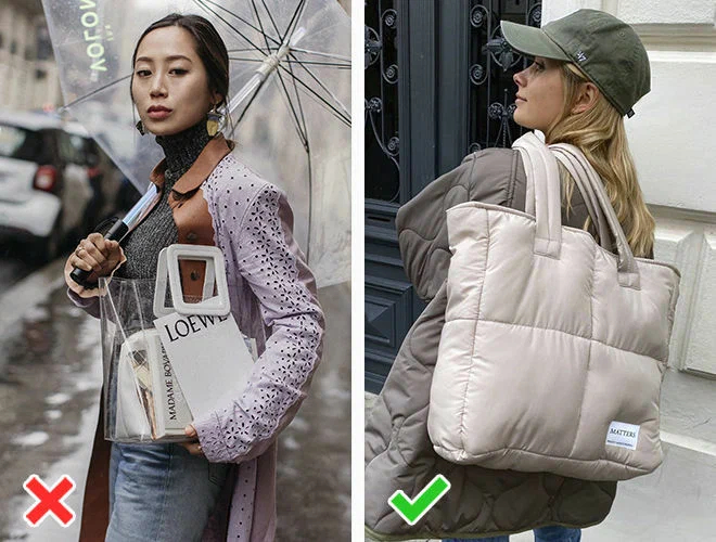 Ні: пластикова сумка. Неважливо, прозора вона або в кольорі, сумка із пластику точно не наш союзник у морози. Матеріал стає дубовим, легко тріскається, виглядає дешево.