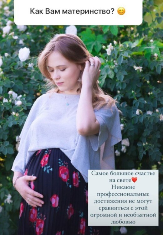 Так, деякий час тому вона опублікувала архівні фото, на яких продемонструвала кругленький животик. Вона зізналася, що материнство – найбільше щастя, воно не зрівняється ні з якими нагородами. Також вона додала, що набрала за час вагітності 18 кілограмів.