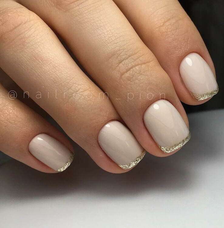Класичний французький манікюр в білому виконанні в цьому сезоні майстри нейл арту радять замінити золотою палітрою.