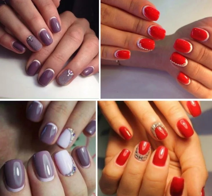 Застосування кристалів в нейларті – поле для фантазії. Найчастіше майстер володіє декількома варіантами, які він придумав сам і виконує на ура. При цьому манікюр можна урізноманітнити камінням по вже готовим схемам. Наприклад, зараз великим попитом користується бічне заповнення кристалами зворотного френча.