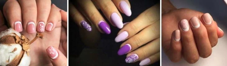 Нічого нового, все теж нігтьове ложе і посмішка. Тільки невелике доповнення – цікаві орнаменти, різноманітні принти. Використання в якості акценту квіткових композицій зовсім не забороняється. Навпаки флористичні мотиви забезпечують манікюру ніжність і романтичність.