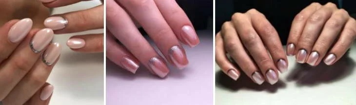 Як правило перламутрові нотки є акцентом в нейларті. У зворотному френчі вони виглядають не менш ефектно. Нерідко блискучий пігмент застосовують, щоб заповнити посмішку або наситити лунку. Крім того, використовувати втірку можна тільки покриваючи нею ложе, а зону посмішки при цьому не чіпати.